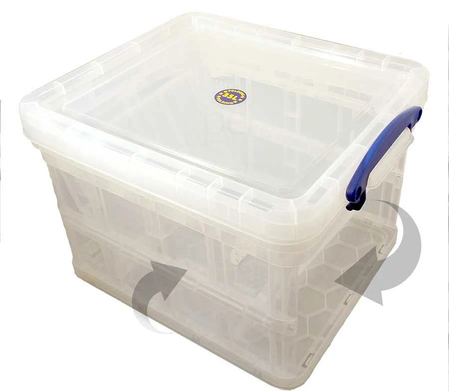The clear polypropylene material is acid-free making them suitable for storage and conservation use. Really Useful Boxes are stackable and complete with lids and locking handles.