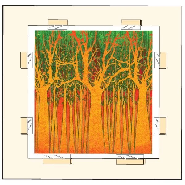Simply position the print or photograph in place and adhere strips to the mat. No adhesive ever comes in contact with the artwork, instead the art is “cradled” by inert polyester and is ready to be framed.