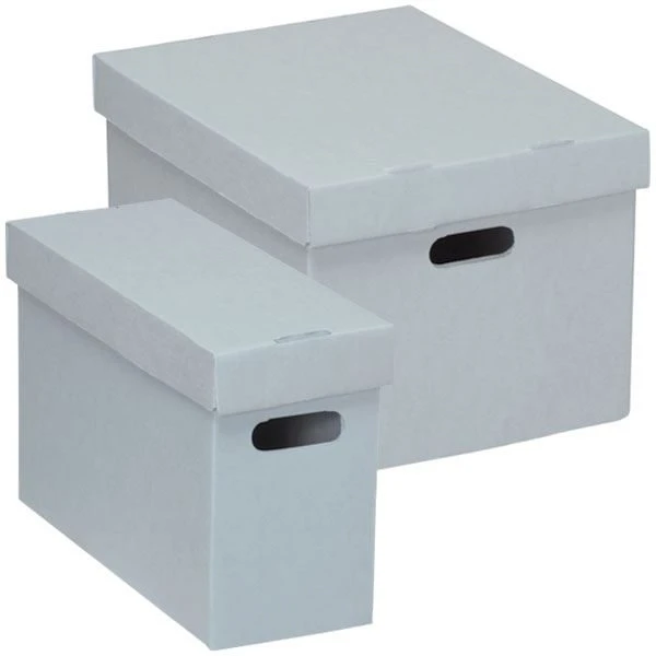 Made from Perma/Dur® board, our acid free cardboard boxes with lids are made of acid-free, and lignin free, virgin bleached fibres which have been buffered to protect against atmospheric pollutants and neutralise migrant acidity protecting stored contents. Constructed with double side walls and bottoms to provide extra stacking strength in pleasing smooth, soil resistant blue/grey colour.
