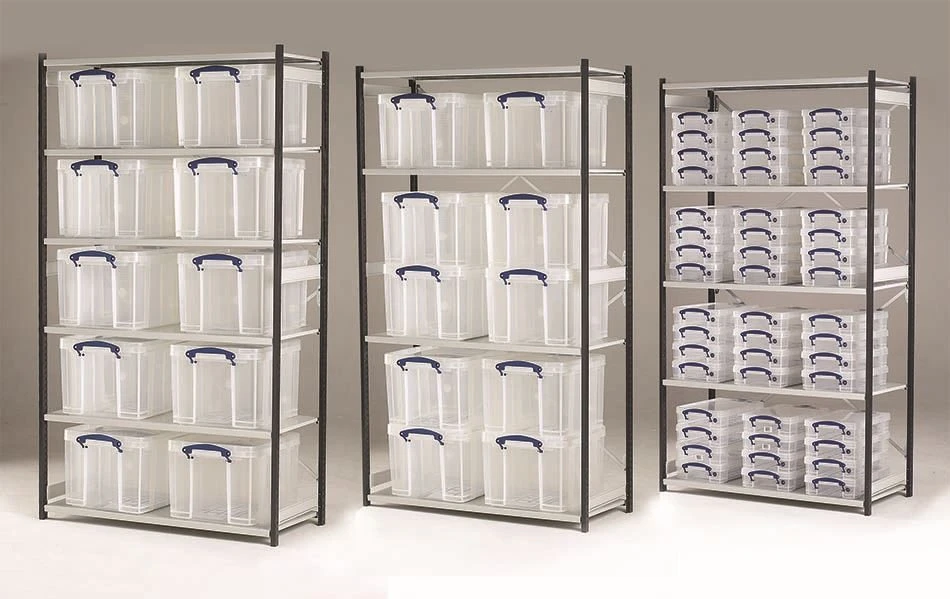 Really Useful Box storage bays can be used with other sizes of boxes to suit your requirements. Each shelf will take 78kg, please note this if for uniformly distributed weights. Graphite grey uprights with light grey shelves.