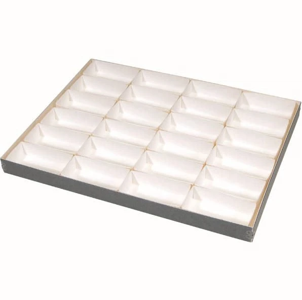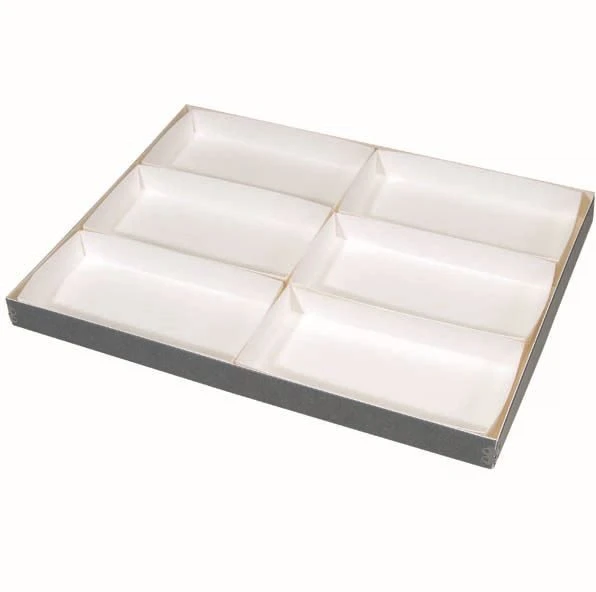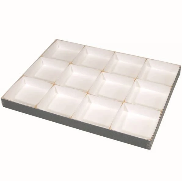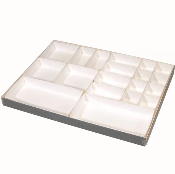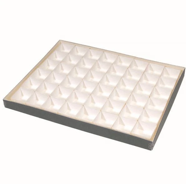 - All specimen trays are constructed of white, unbuffered, 2-ply, 100% rag board fastened on the corners by an acid-free paper tape with a stable heat seal acrylic adhesive.