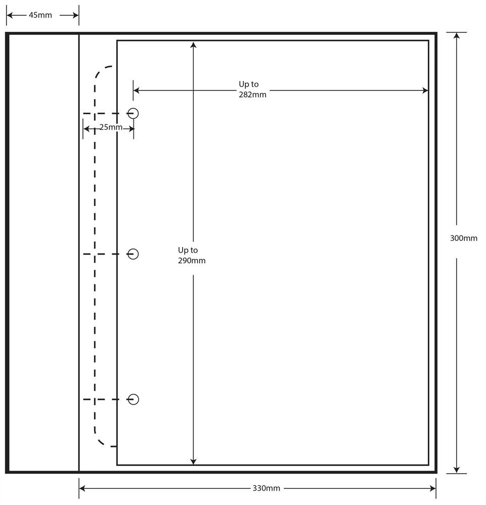 - 1″ (25mm) D-rings will accommodate pages up to 282mm wide from centre of punched hole