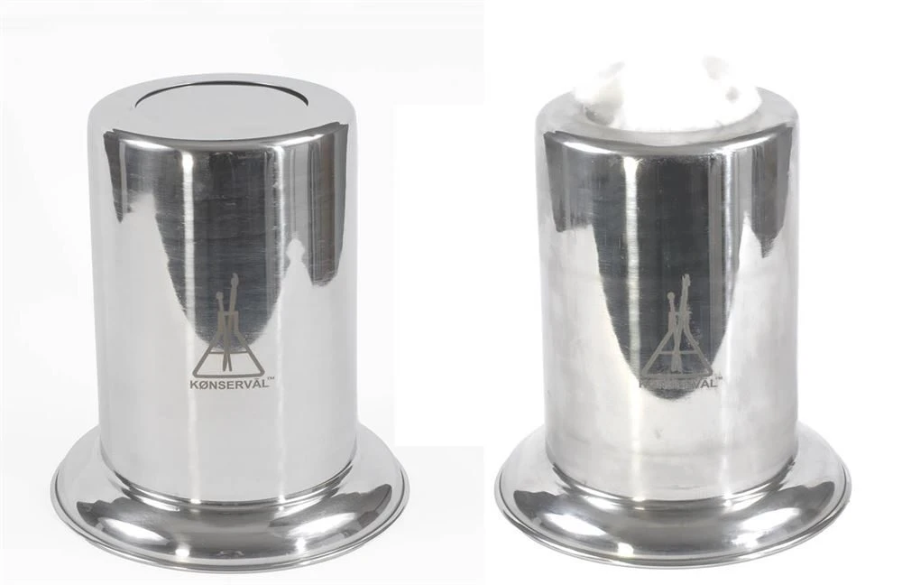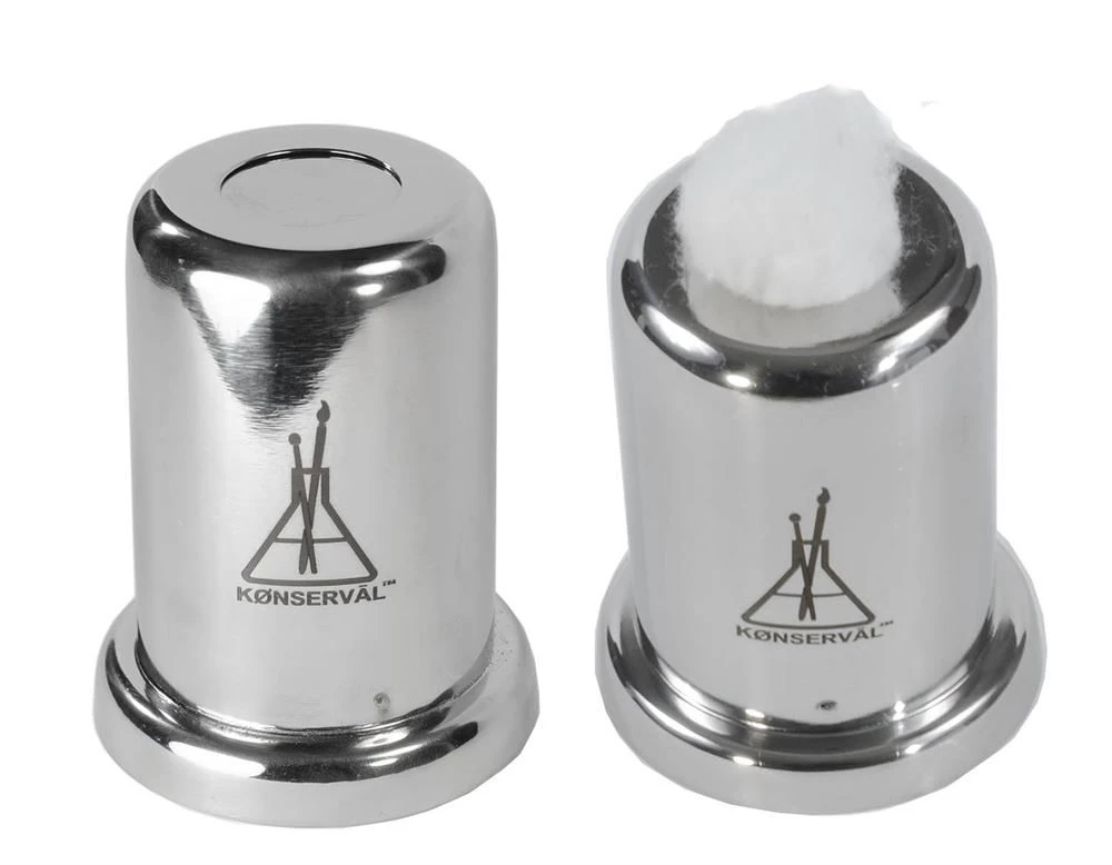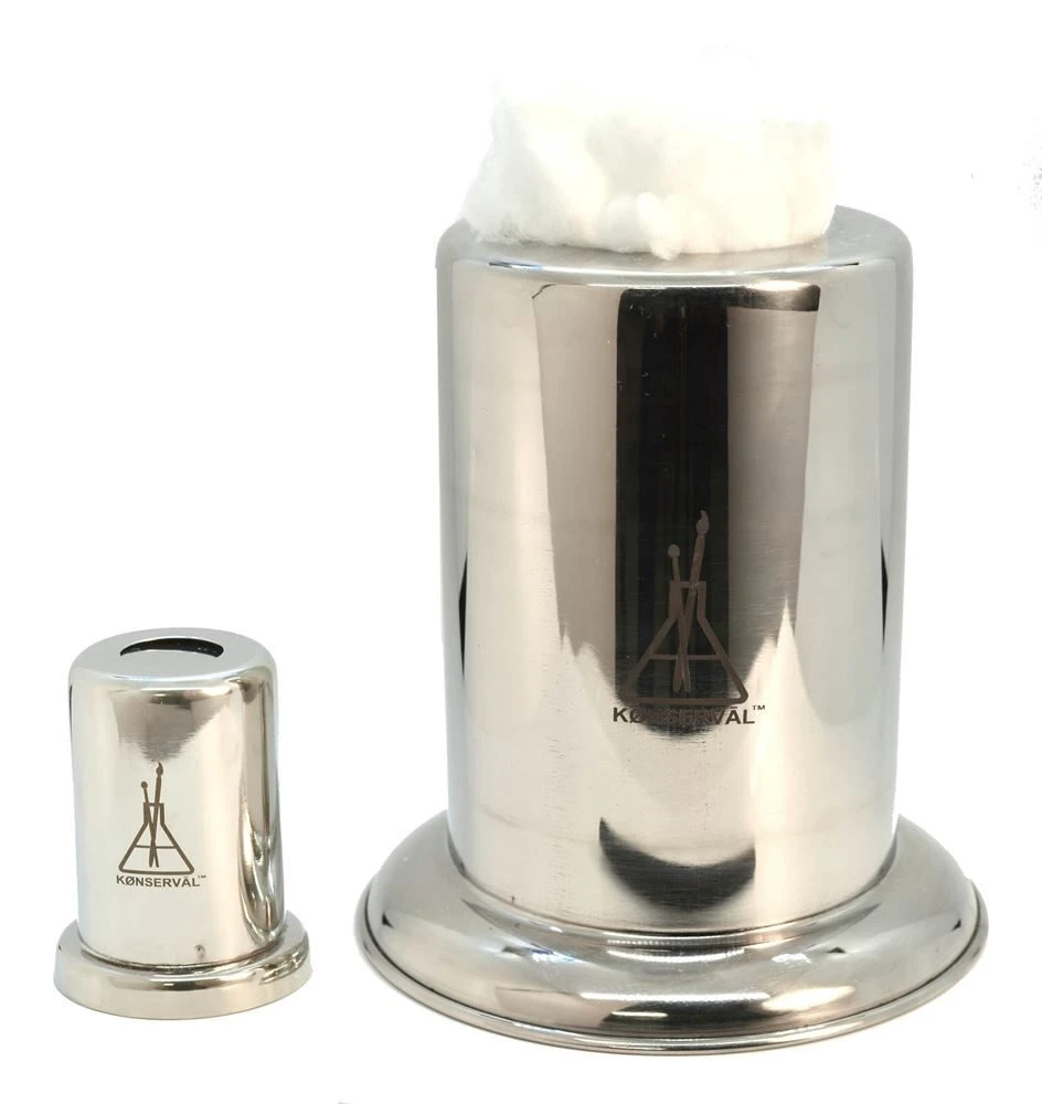Cotton wool container ideal for conservation, offering hands-free dispensing of cotton wool. The unique spring mechanism pushes the cotton wool to expose the top for ease of dispensing while keeping the rest clean. Kuglen has been designed by Konserval specially for conservators.
