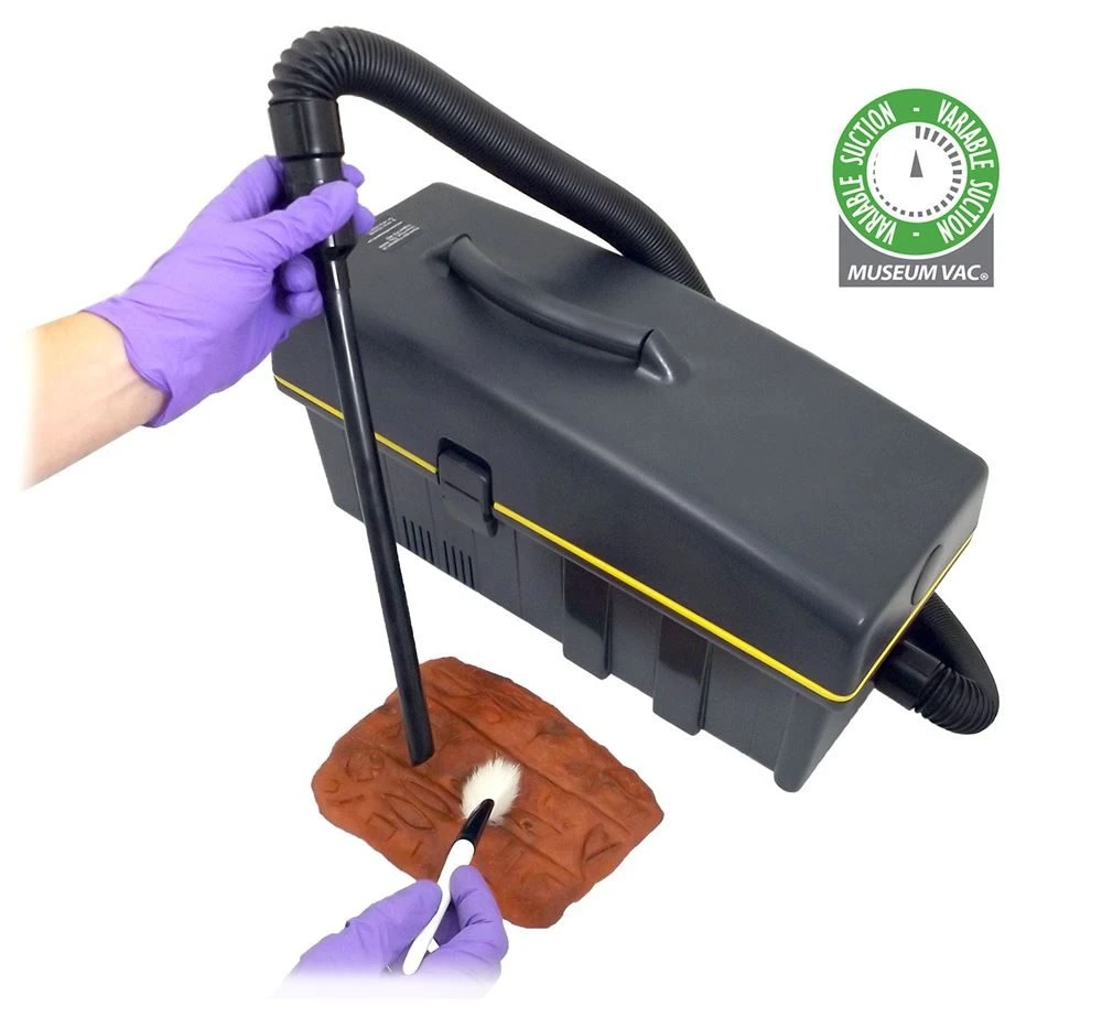 Museum Vac® in compact carry case with dial suction control. Complete with tools and accessories conveniently stored in the carry case lid for ease of transport. Adjustable for delicate suction to full power vacuum. Thermal protection cuts out the motor if bag is full or blocked. 800 watt motor produces a 30 litre per second airflow making a strong suction of 1400mm WG.![]()