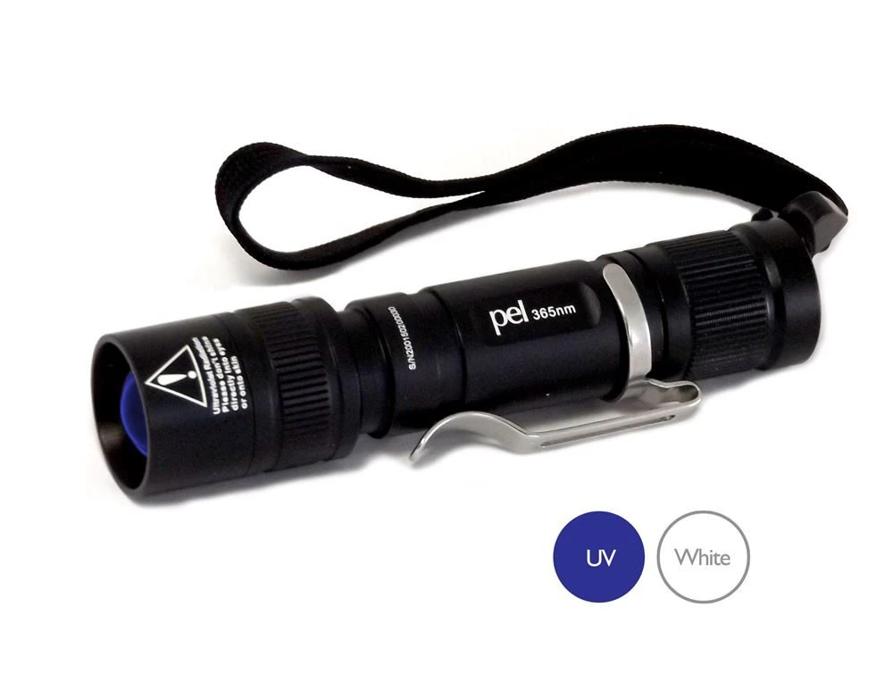 The even distribution of light, and 365nm UV wavelength, makes it ideal for conservation purposes. Using an adjustable convex lens, the torch offers a good quality of illumination, the beam spread can be focussed using the lens adjustment. The evenness of the UV light makes capturing photographic evidence of work easier. IPX-7 water resistance.